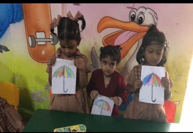 Various activities were organized to engage the little ones, including Umbrella colouring activity Craft making (paper umbrellas) and Rhymes and songs related to rain.Children participated enthusiastically and showcased their creativity and imagination.