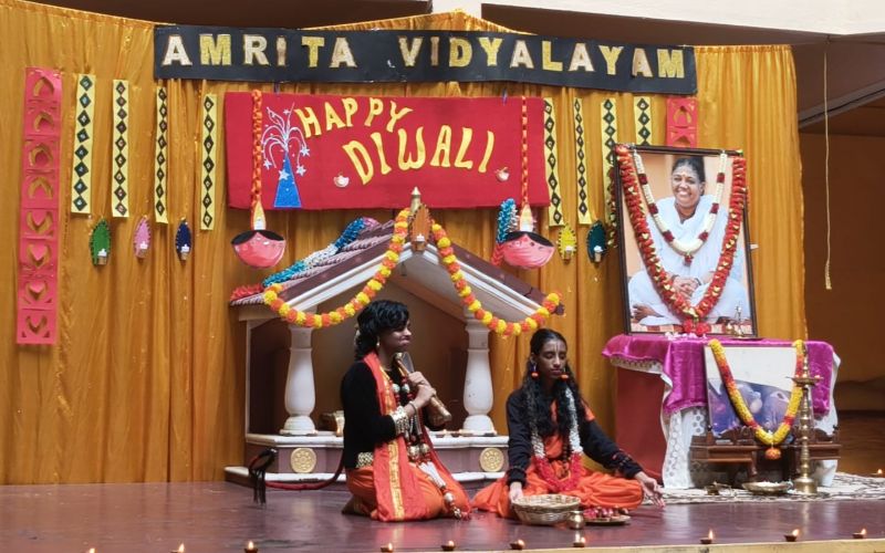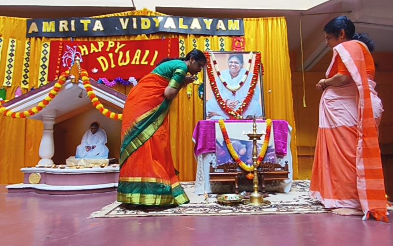 Amrita Vidyalayam, Kozhikode, celebrated Diwali with great joy and enthusiasm on 21st October 2025. The celebration began with a prayer and the lighting of the ceremonial lamp. Our Principal Ma’am delivered an inspiring message highlighting the significance of Diwali and the values of light, goodness, and unity it represents.