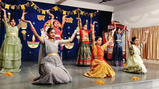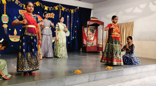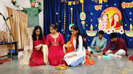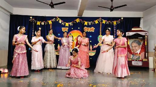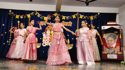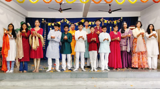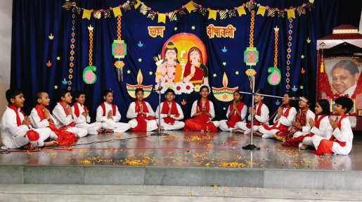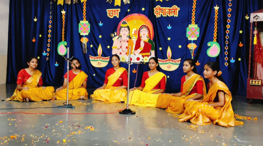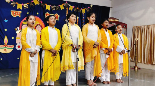 Classes 7, 8, and 10 students performed a skit based on the Ramayana. Class 4 sang “Ram Naam Tera Tattvam”, followed by a speech on ways to celebrate Diwali wisely.