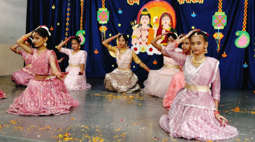 Next, Classes 4, 5, and 9 presented “Jo Kesari Ke Laal”, and Classes 7 and 8 performed “Mere Ghar Ram Aaye”. The celebration ended with the National Anthem.