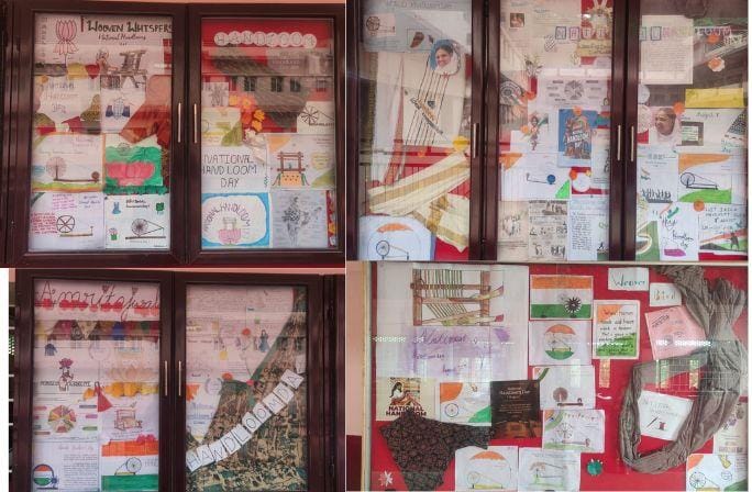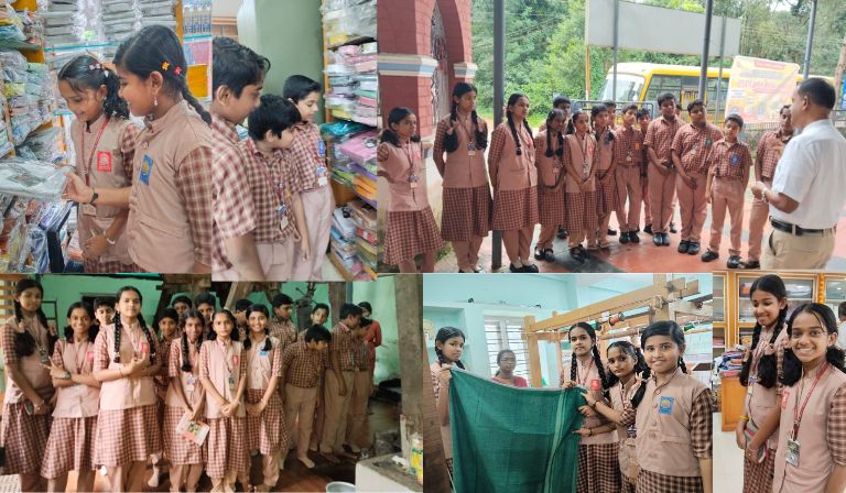 As part of the celebrations, Grade 7 students visited the Elanthoor Khadi Board, where they gained hands-on experience of the weaving process and interacted with skilled artisans. The students also prepared an informative bulletin board showcasing diverse handloom traditions from across India. The celebration fostered awareness of the significance of handlooms, encouraged appreciation for traditional craftsmanship, and provided students with a meaningful connection to India’s weaving heritage.