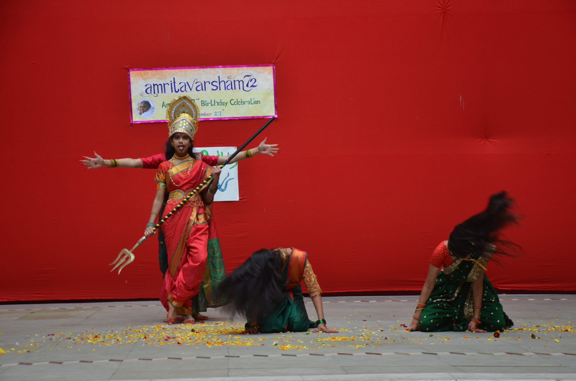 Amma has always promoted women’s empowerment through initiatives like the Amrita SREE Programme, which was launched in 2006. This program provides vocational training, microloans, insurance, and savings facilities to women, helping them become financially independent. It also supports start-up capital and encourages gender equality in society. To add to the celebration, a graceful group dance on Devi was performed by the students, filling the atmosphere with devotion and joy