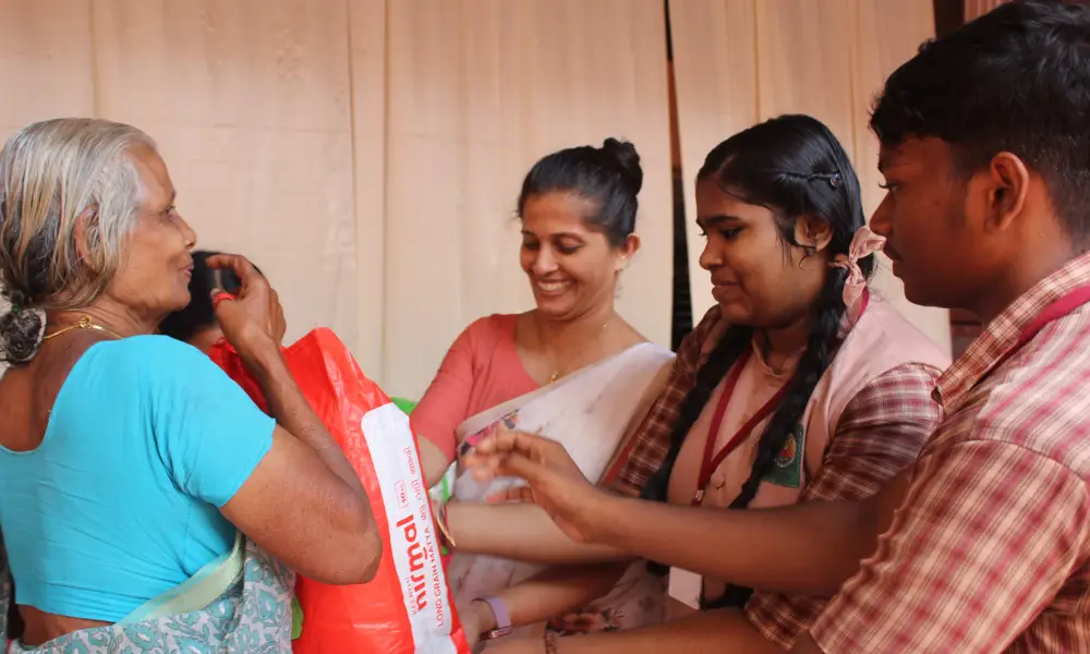 As part of Amma's Birthday Celebrations, we have distributed food, stationery and clothing kits to more than 50 needy families. All students offered various materials for the program. Our ward councilor Smt. Reena Vishal inaugurated the program. Our students distributed Lunch Packets to the needy ones in and around Thiruvalla locality. Love, Serve, and Smile...