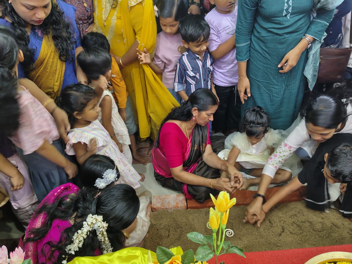 On the auspicious occasion of Vijayadashami, students and teachers of Amrita Vidyalayam, Thalassery offered prayers to Goddess Saraswati, marking the renewal of learning and wisdom. The day was filled with devotion as books were placed for pooja and the youngest learners were initiated into the world of knowledge with reverence and blessings from Amma.
