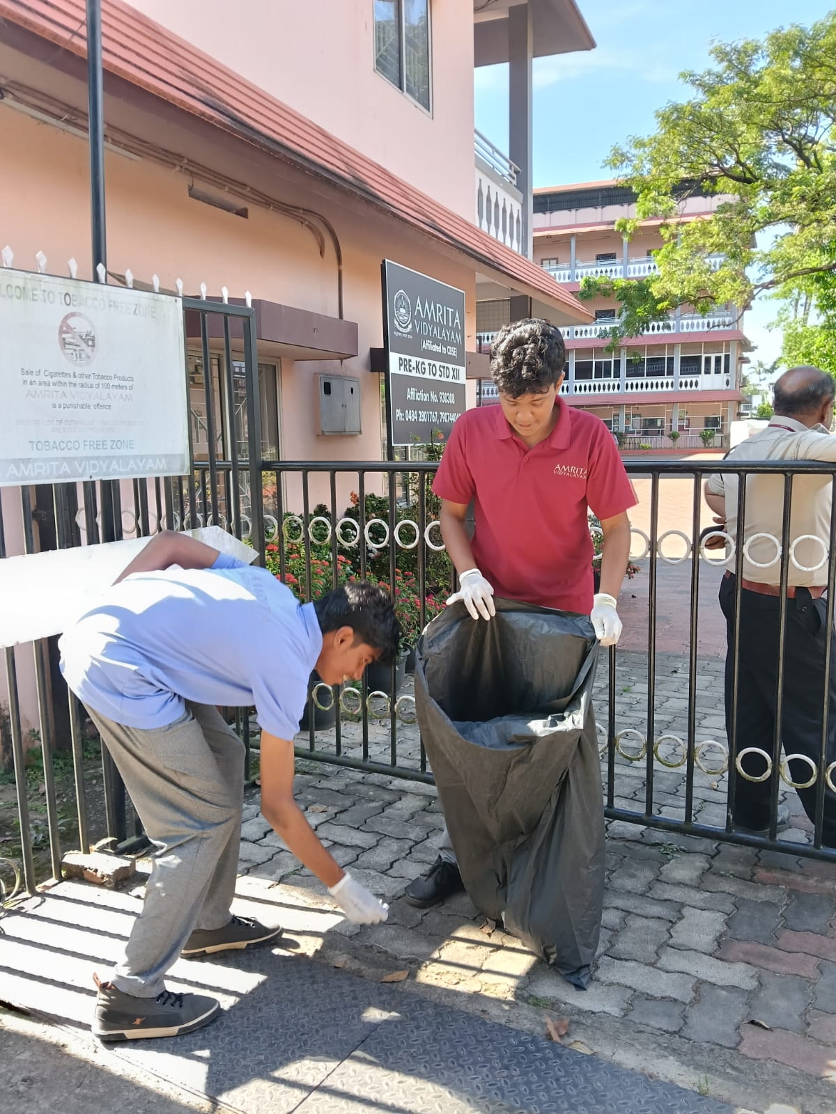 Amrita Vidyalayam - Edappally - Observed Gandhi Jayanti on 3rd October 2025. A short programme was conducted to remember the values of Mahatma Gandhi. After the assembly, students and teachers took part in a campus cleaning drive.