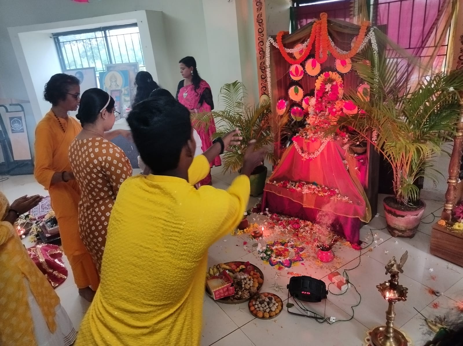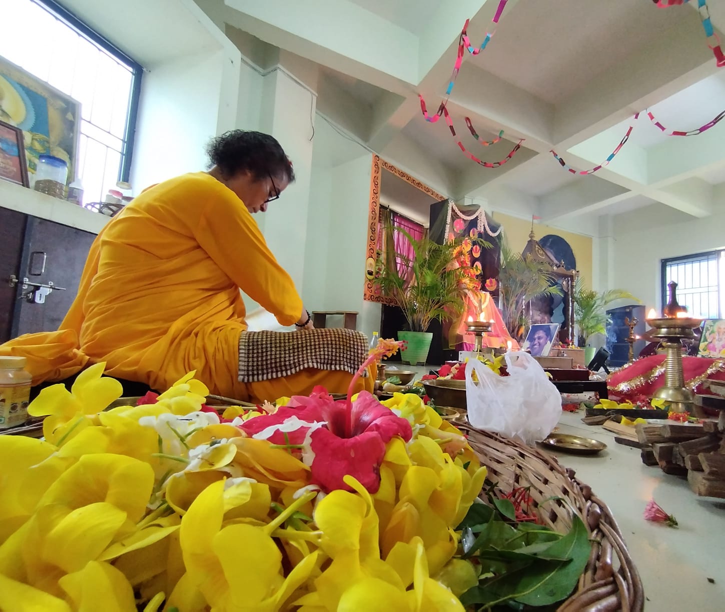 We celebrated the Ganesh Chaturthi with zeal and devotion. The atmosphere was filled with religious fervor. The puja was conducted by Bri Rasikamrita Chaitanya and Bri Namratamrita Chaitanya, who chanted Ammas Astotara. The students sang Bhajans. The students offered flower to thd God and prayed for their wellbeing.