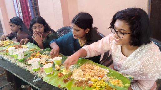 The celebrations concluded with a grand Onam Sadhya, a traditional Kerala feast served on banana leaves. Students relished the authentic dishes, sharing laughter and joy over a meal that brought the entire school community together.