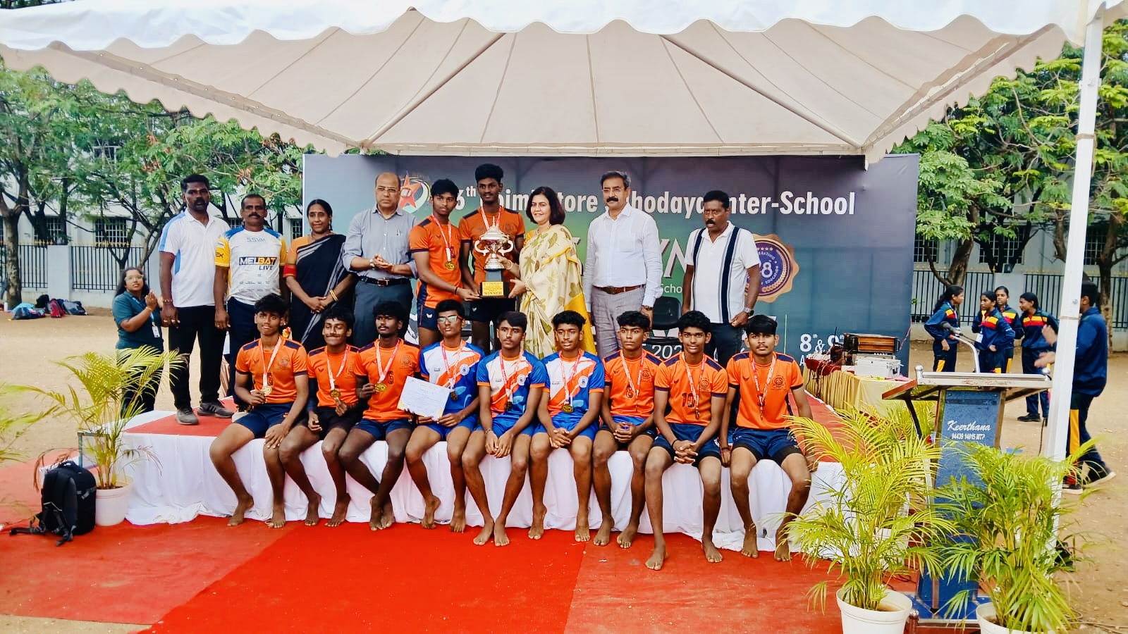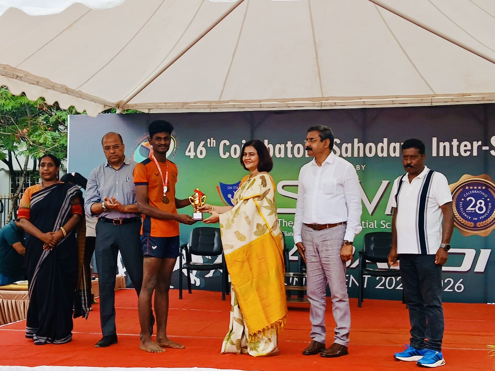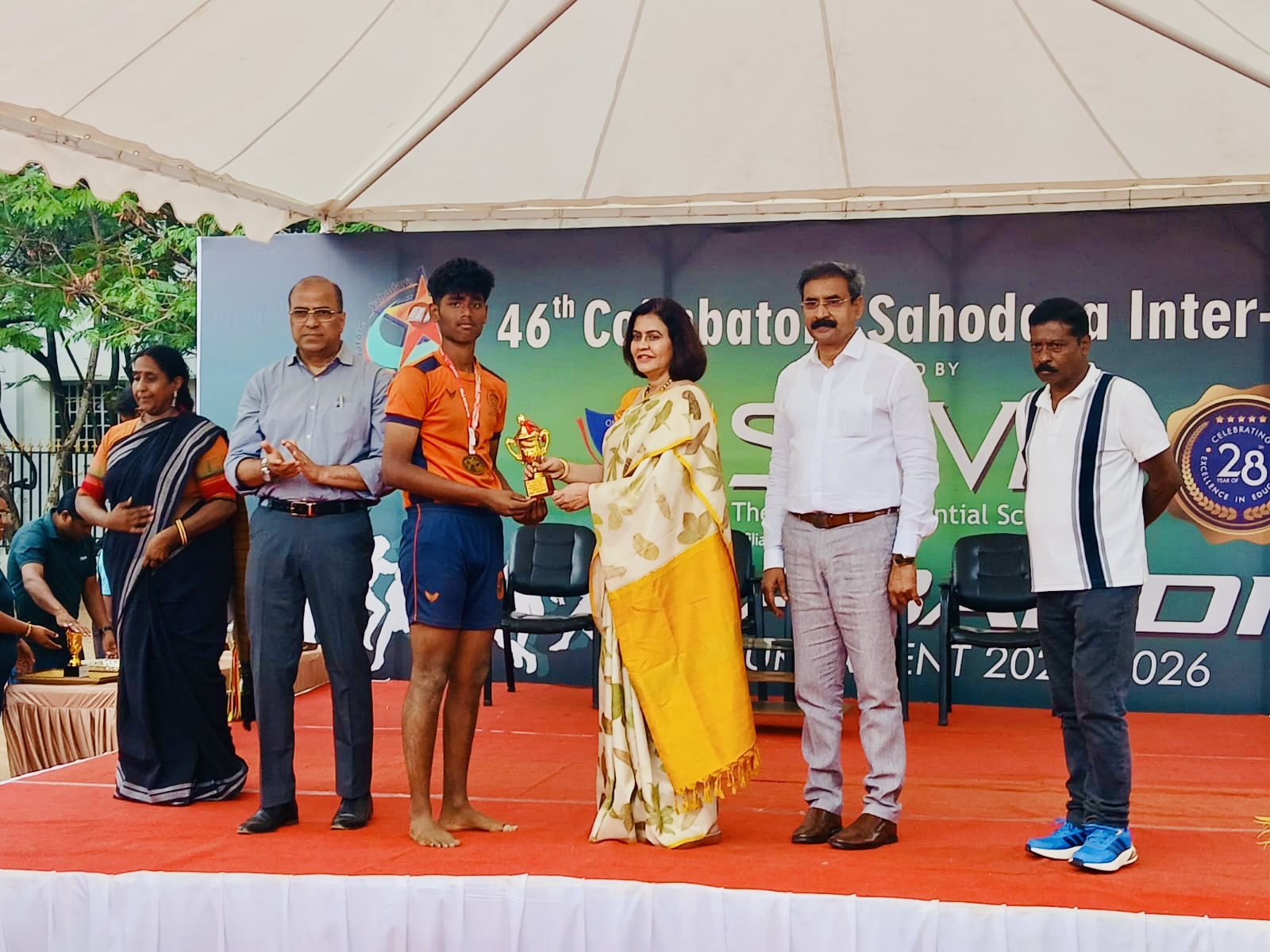 With fearless raids and rock-solid defence, our U-19 Kabaddi boys of Amrita Vidyalayam, Nallampalayam, conquered the court and lifted the Sahodaya Championship Trophy at SSVM, Mettupalayam. Adding to the glory, Sudharsan (Grade 12) was crowned Best Raider while Tharun (Grade 11) earned the title of Best Defender. Their flawless teamwork, relentless spirit, and fearless play made the tournament roar with the pride of Amrita.