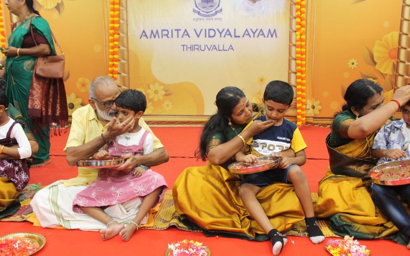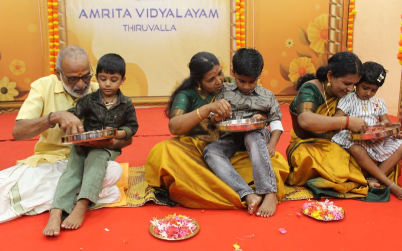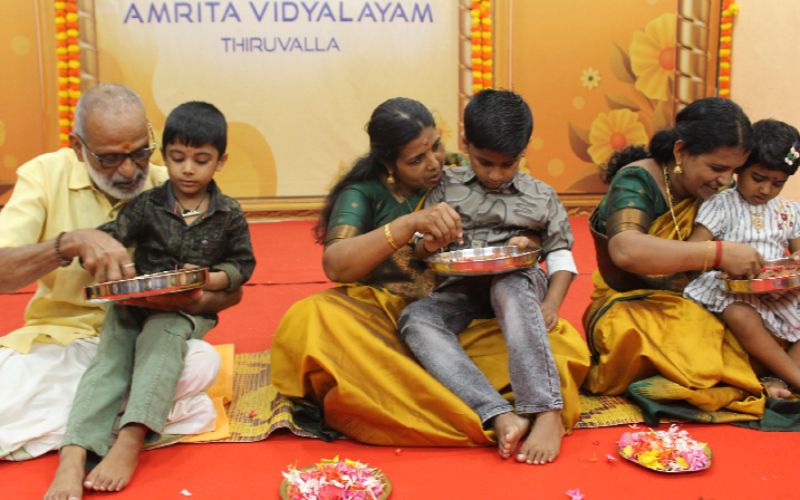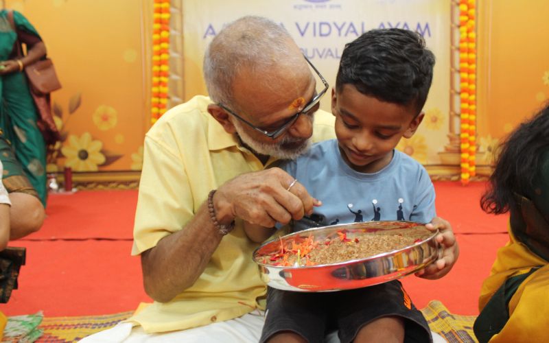 Kindergarten Reopening Day... Blessed by the presence of Sri. N Somasekharan Sir, a senior journalist, author and spiritual speaker. Our little ones were literally made to enter into the world of letters by traditional vidyarambham ceremony.