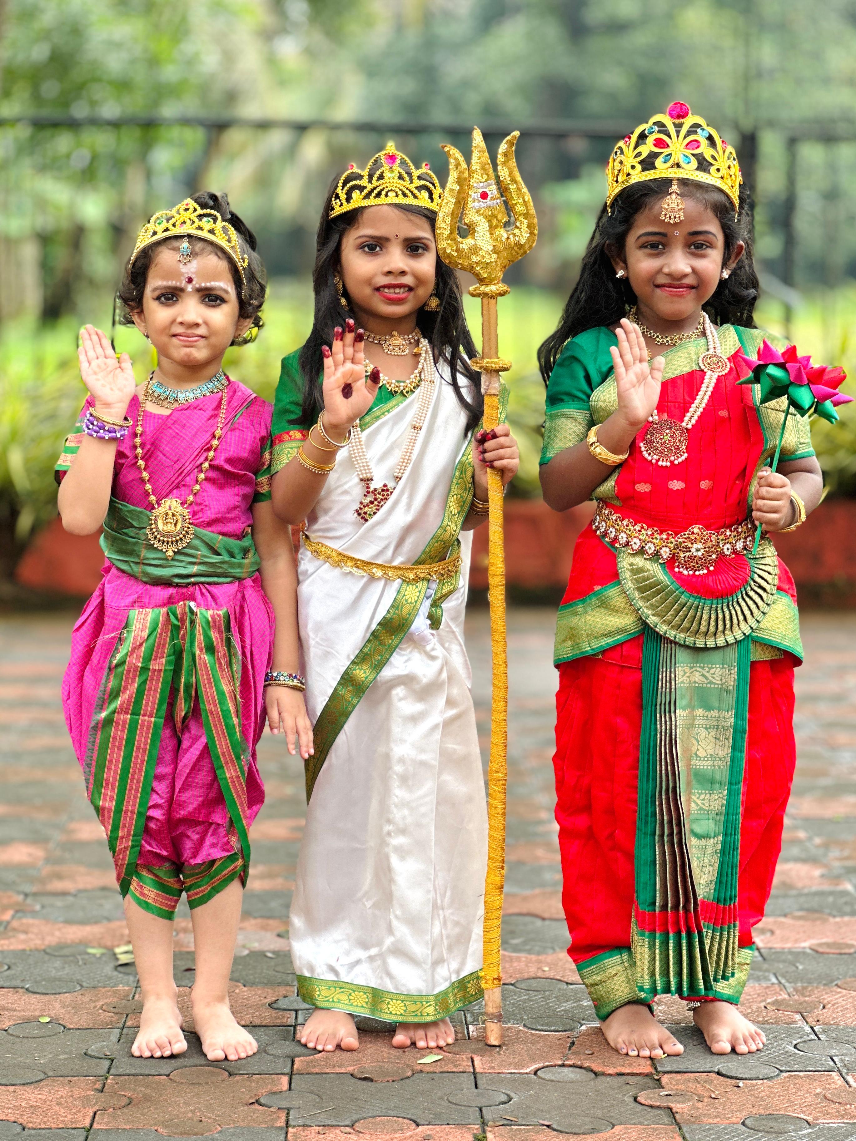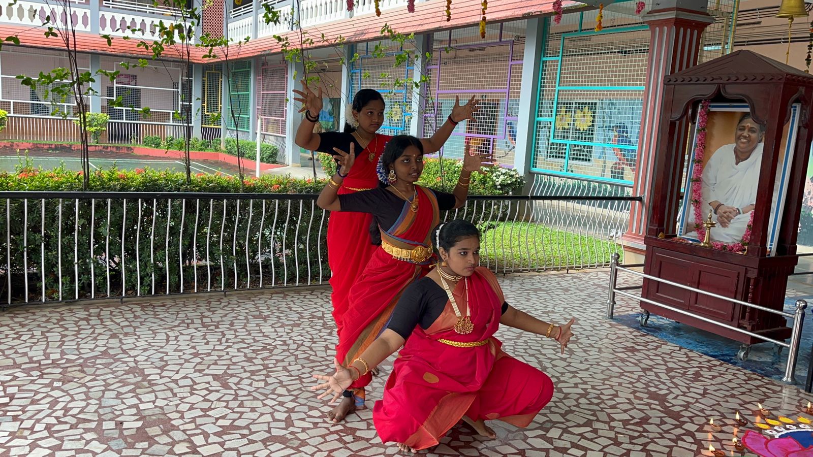 This year, the Navratri festival is celebrated, starting the days with prayer, special speech depicting the nine forms of devis going forward with dance showing the power of the goddess in all forms. Continuing with prayer in Amritam (temple), which is decorated with Bomma Kollu, "establishment of the goddess," referring to the sacred ritual of invoking and establishing the presence of a divine feminine form, or Devi, into a home, temple, or during a festival like Navratri. Then prasadam is distributed among students and staff.