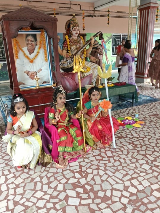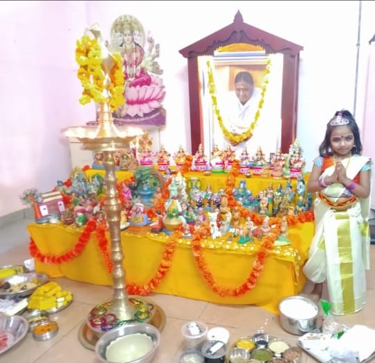 This year, the Navratri festival is celebrated, starting the days with prayer, special speech depicting the nine forms of devis going forward with dance showing the power of the goddess in all forms. Continuing with prayer in Amritam (temple), which is decorated with Bomma Kollu, "establishment of the goddess," referring to the sacred ritual of invoking and establishing the presence of a divine feminine form, or Devi, into a home, temple, or during a festival like Navratri. Then prasadam is distributed among students and staff.