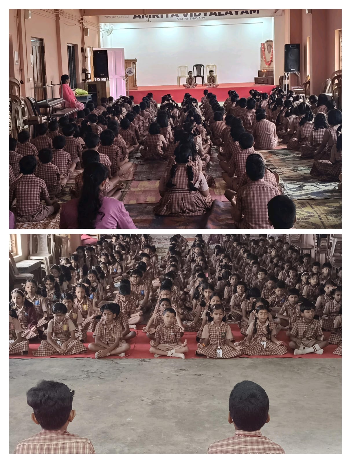 The nine-day festival of Navratri was inaugurated with great devotion and enthusiasm at Amrita Vidyalayam, Mananthavady. The celebration began with a special prayer invoking the blessings of Maa Durga. Teachers, students, and staff joined together in chanting bhajans, filling the atmosphere with divine vibrations.