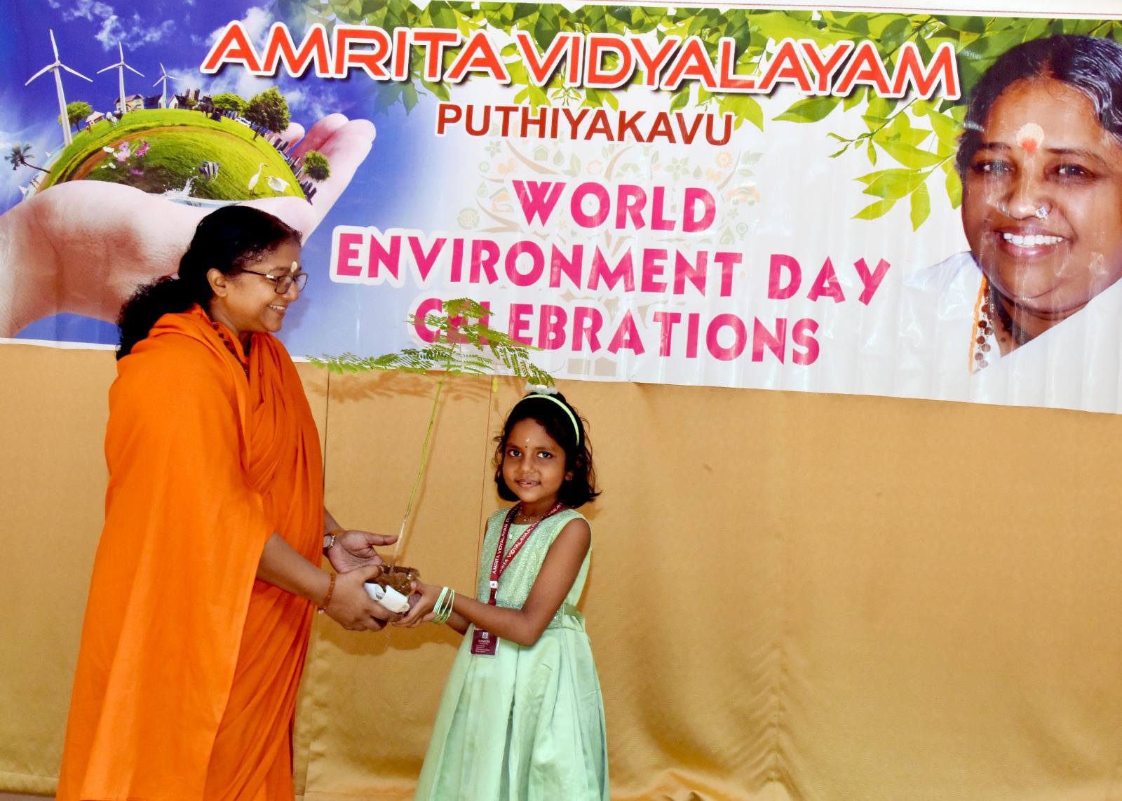 Environment Day was observed with great spirit and purpose at Amrita Vidyalayam, highlighting the vital need for conserving nature. In a symbolic gesture of hope and renewal, Principal Ma gifted saplings to students celebrating their birthdays, encouraging them to grow along with the plants they nurture. Students of Class XII took the lead in planting saplings in the school yard reinforcing their role as guardians of the environment. A thought-provoking skit was also presented, powerfully conveying the message of sustainable development and the urgent call to preserve Mother Earth for generations to come.