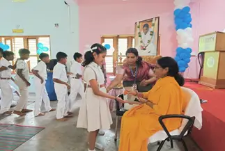 Our KG Opening was conducted on the same day. She blessed the students with her words and presence and talked to the parents. The formal ceremony got to a conclusion with the distribution of Prasada.