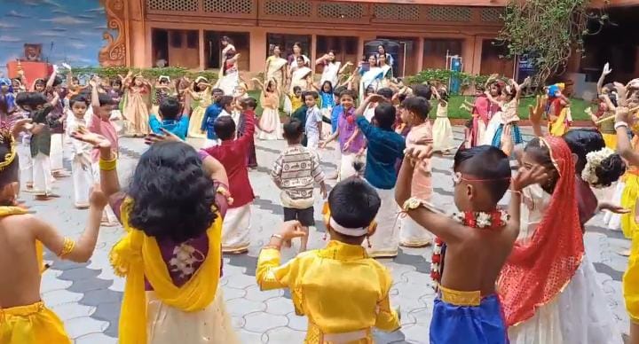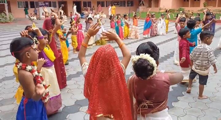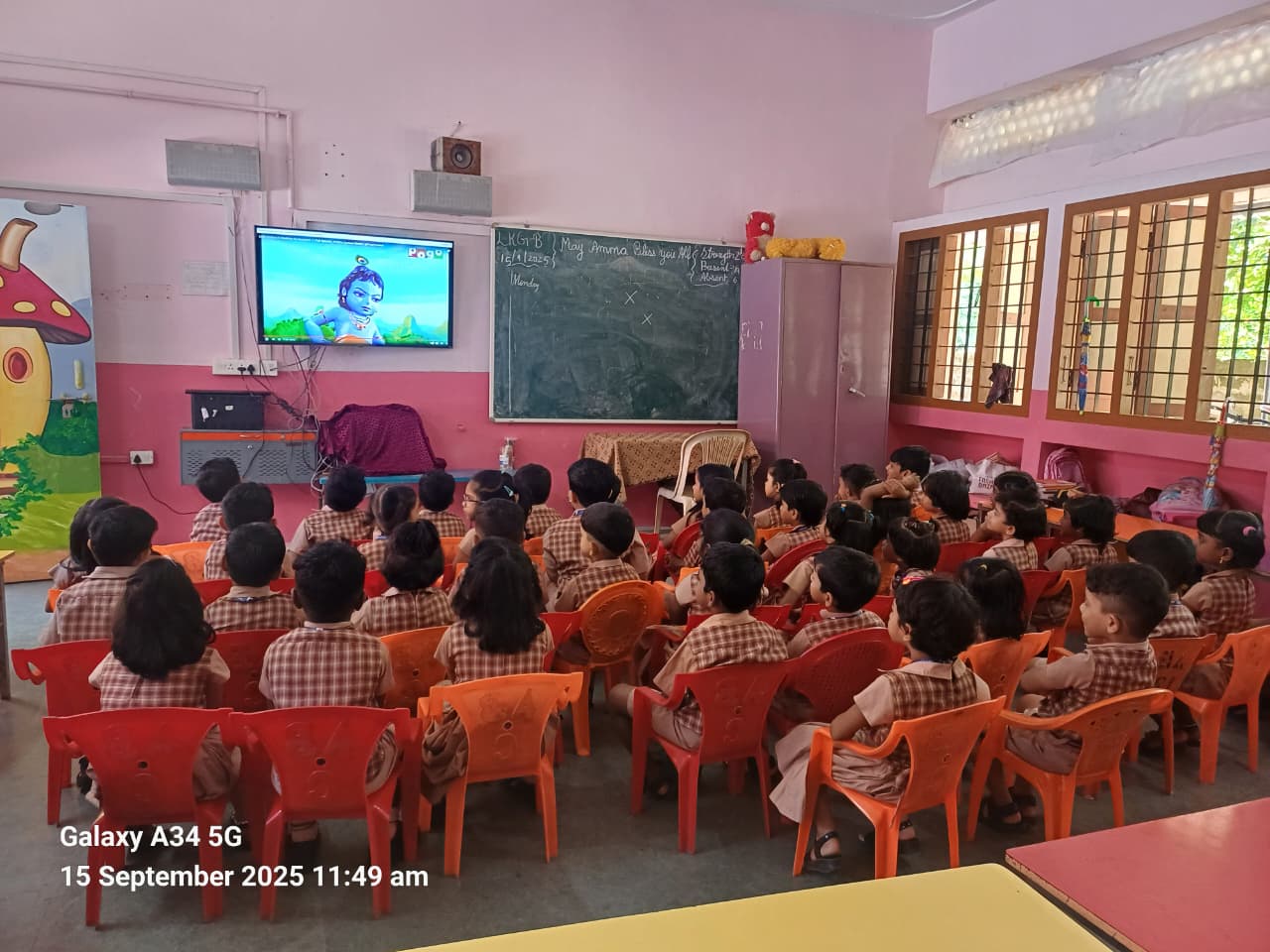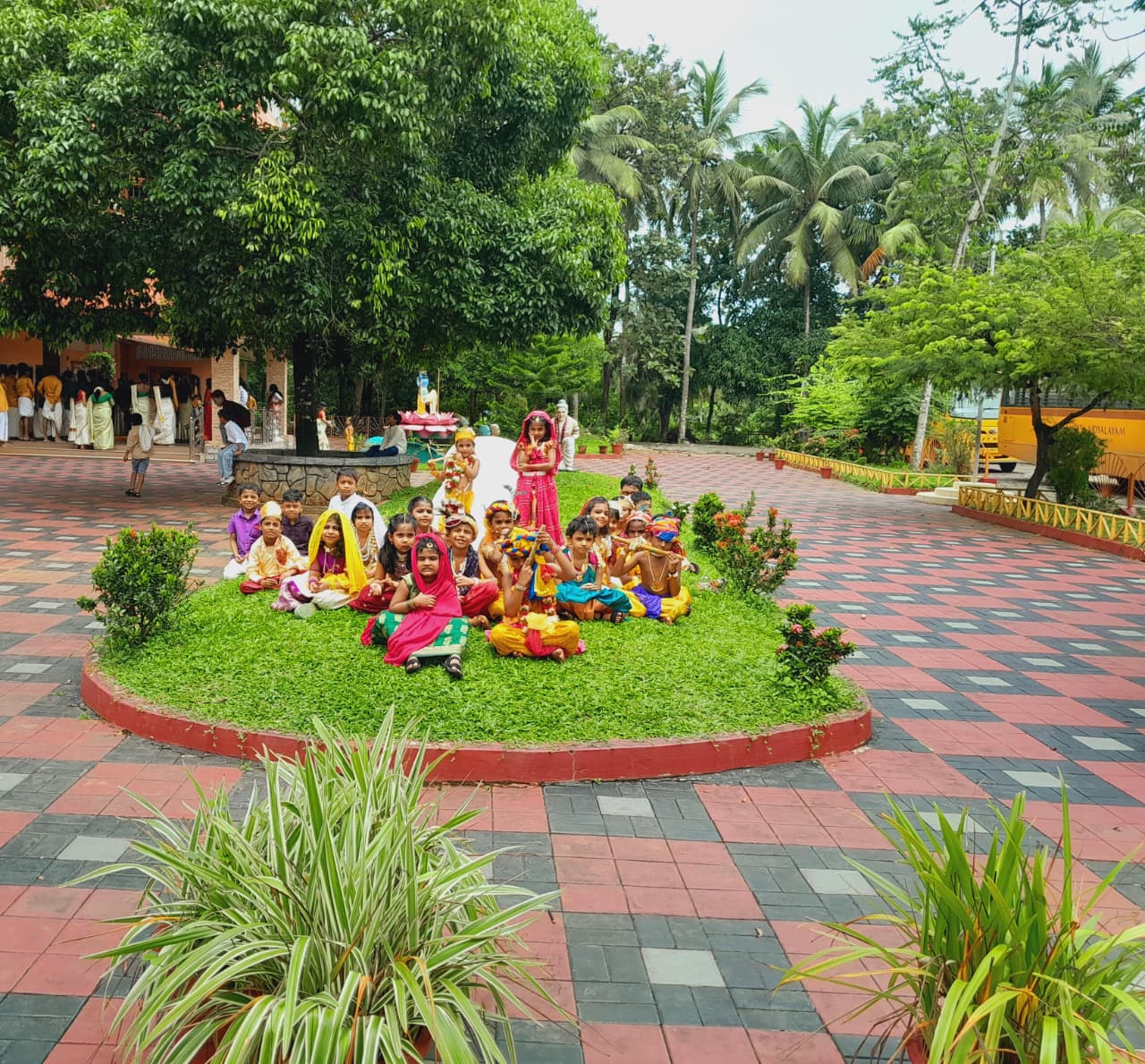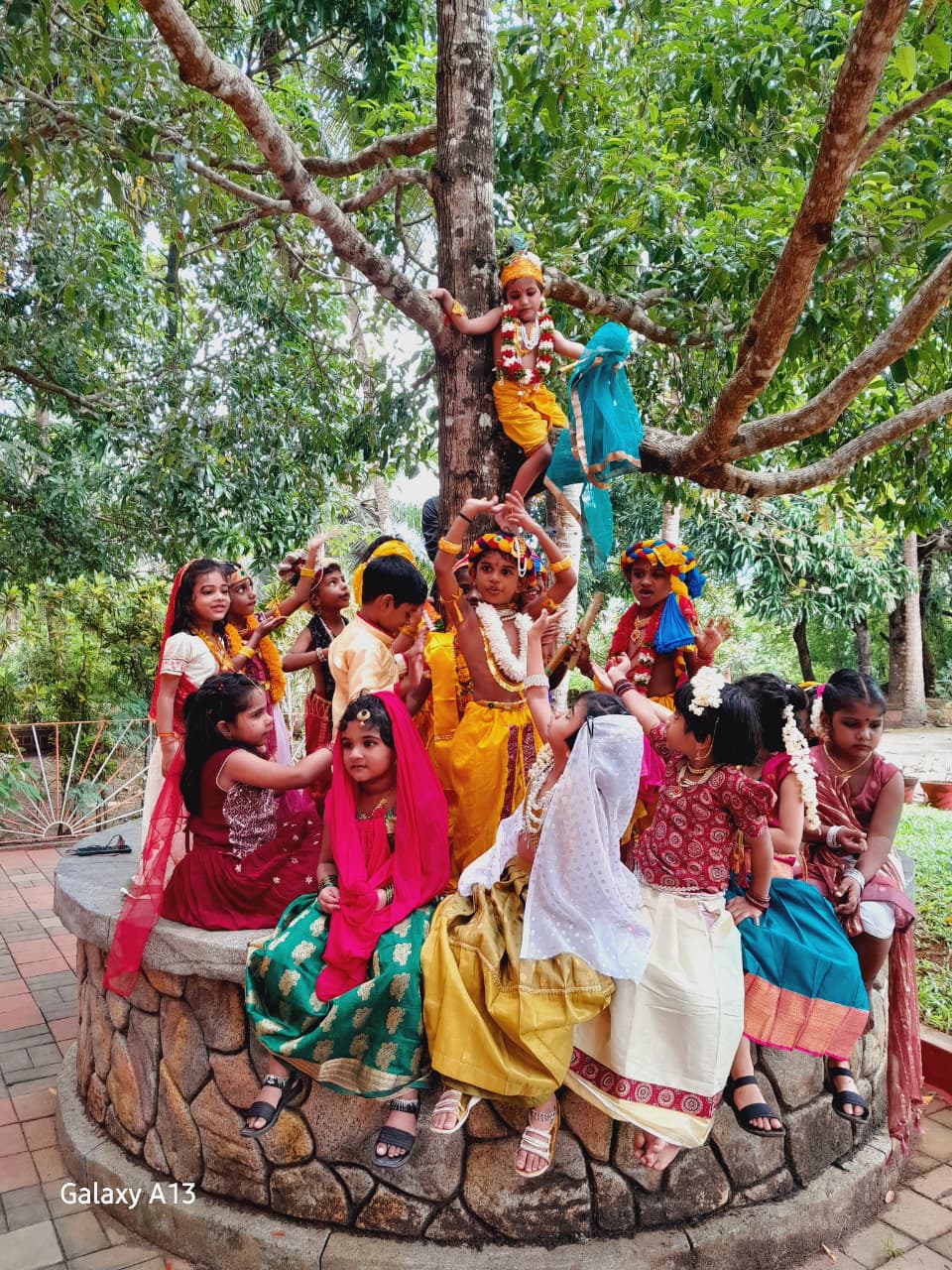 Sreekrishna Jayanthi was celebrated with great enthusiasm at our school. The KG students looked adorable dressed as Radha and Krishna. They presented a graceful Radha Krishna dance that delighted everyone. Teachers narrated stories of Lord Krishna and showed pictures depicting important moments from his life. The celebration created a joyful and devotional atmosphere, helping the little ones understand the values taught by Lord Krishna.
