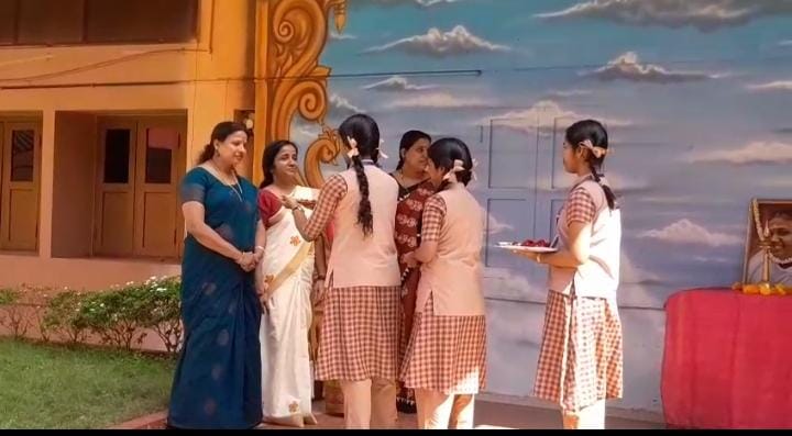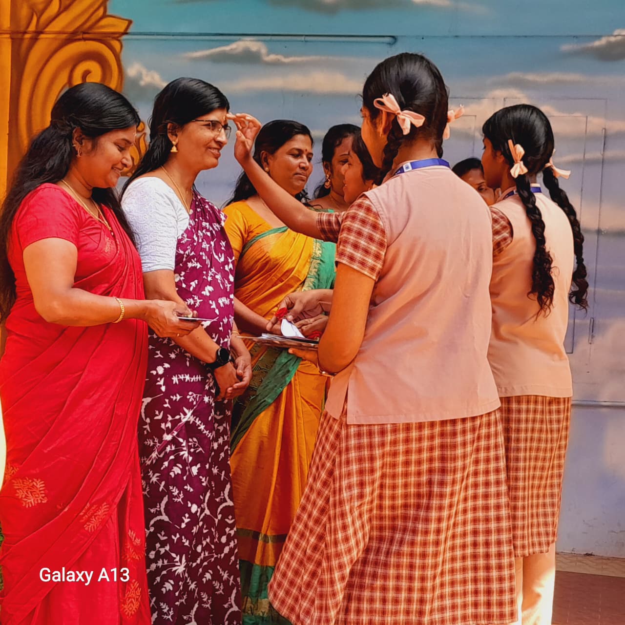 Following the performances, an aarti was performed in reverence to the teachers, symbolizing respect and appreciation. In a heartfelt gesture, students offered beautiful cards and flowers to the teachers as tokens of gratitude for their dedication and hard work.