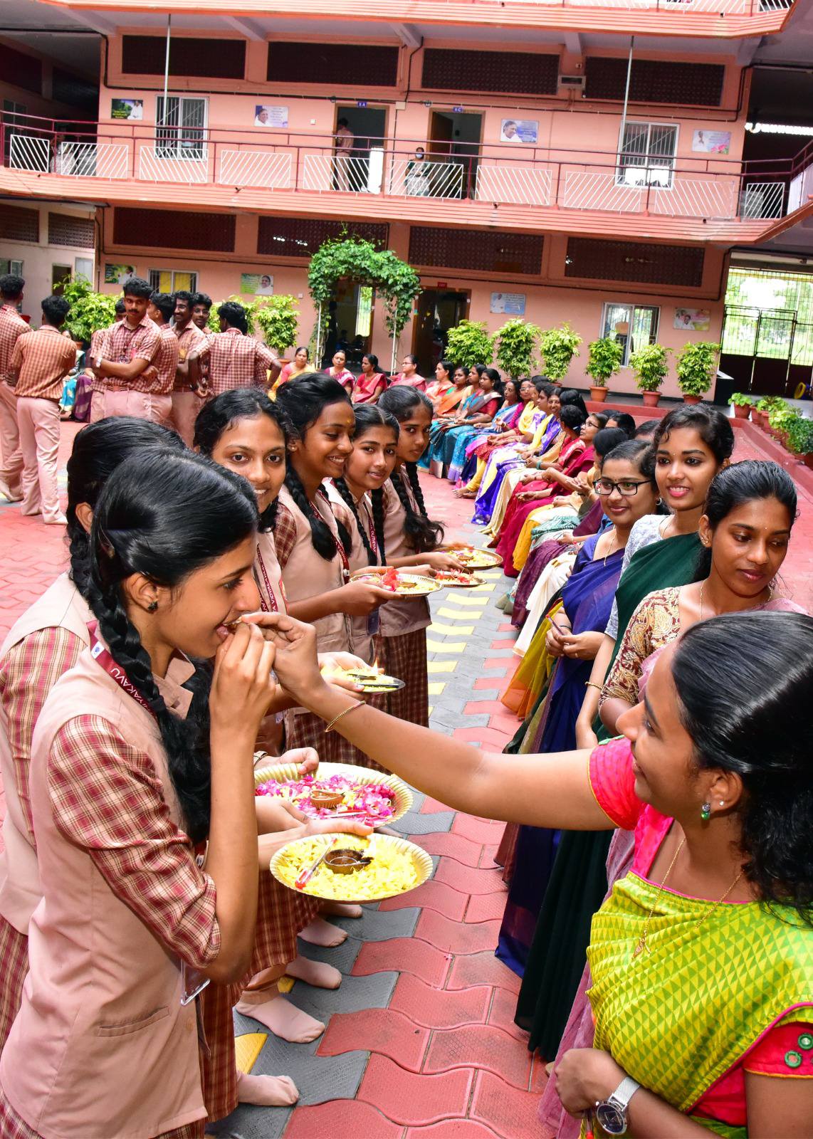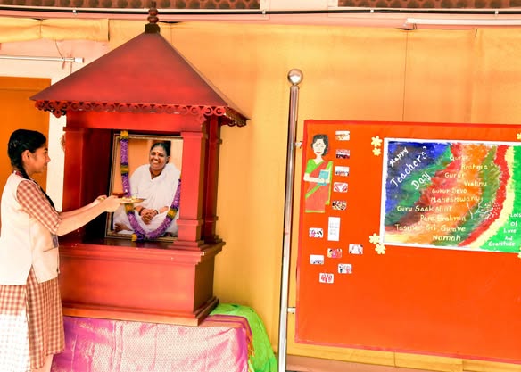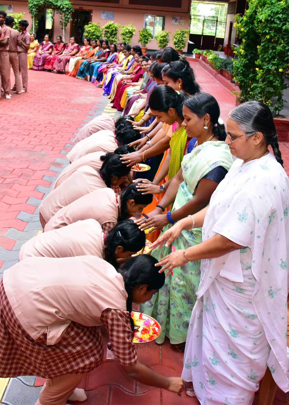 Teachers’ Day was celebrated in our school with deep reverence and joy. The Class XII students performed ārati to the teachers, gifting them red pens and heartfelt thank-you notes as tokens of gratitude. In return, teachers blessed their dear students wholeheartedly and shared sweets to spread happiness. As a gesture of love, the Class XII students managed the entire school for the next one hour, giving the teachers a much-deserved time of leisure. During this period, the students engaged their younger brothers and sisters with fun activities, games, and GK quizzes, filling the school with laughter and bonding. The celebration beautifully echoed the spirit of the guru-shishya tradition, honouring teachers as guiding lights.