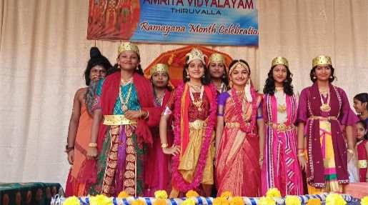 Amrita Vidyalayam Thiruvalla celebrated the sacred month of Ramayana with all its austerity. Ramayana Parayanam, Ramayana Porul, Character presentation, Staging Ramayana Scenes, Mega Ramayana Parayanam, and Ramayana Quiz added colours to the celebration. In every verse, a life lesson — in every character, an inspiration.